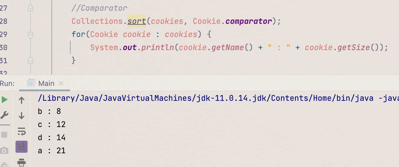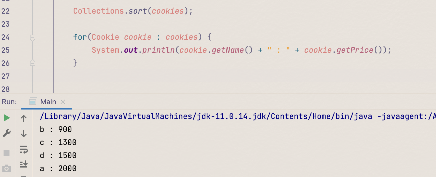 이제는 Collections.sort(cookies)가 에러 없이 동작하고,