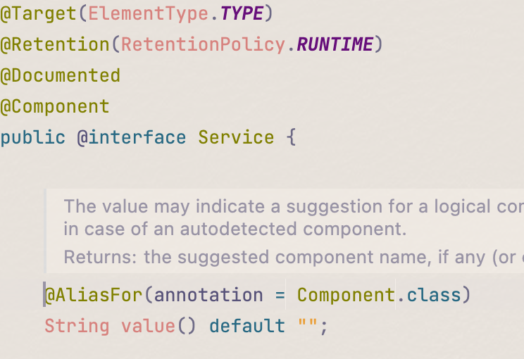 위의 코드는 @Service의 코드인데, 보면 Service annotation에도 @Component가 붙어있기 때문에 @Service를 사용해도 bean으로 사용할 수 있는 것입니다. @Controller, @Repository도 마찬가지 입니다.