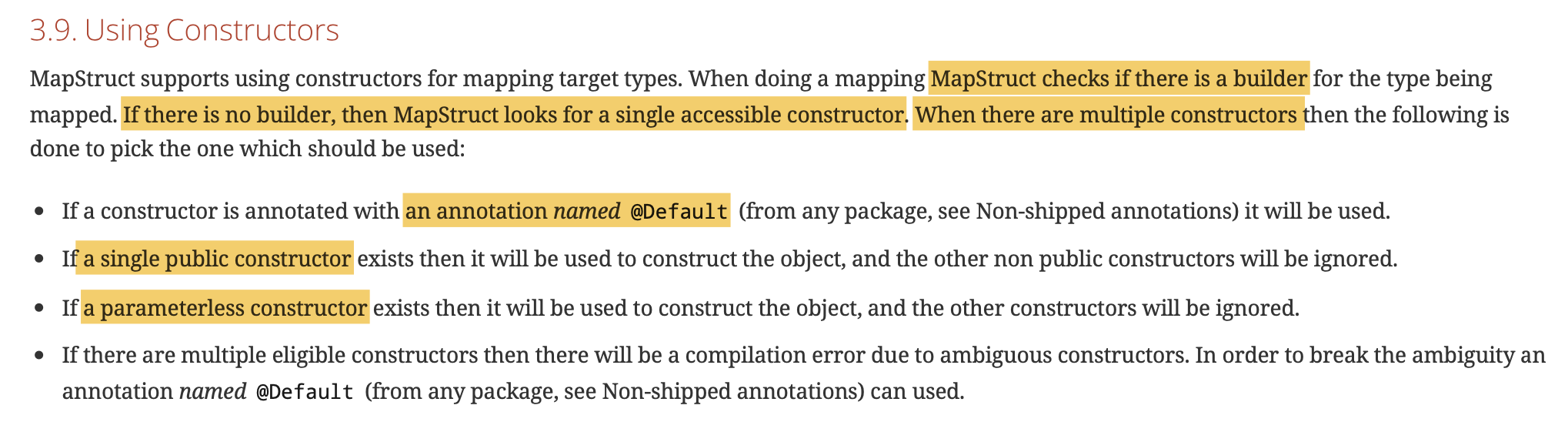 결국 공식문서에서 해답을 찾았는데 답은 Mapstruct가 mapping을 할 도구를 찾을 때는 우선순위가 있기 때문이어서 였습니다.