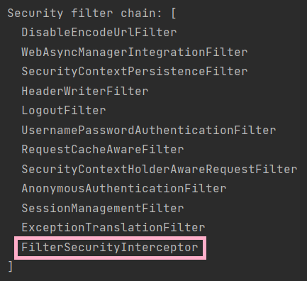 사용자에게서 요청이 들어왔을 때, 권한 확인이 필요한 경우에는 SecurityFilterChain의 체인 중 FilterSecurityInterceptor가 동작하게 됩니다.