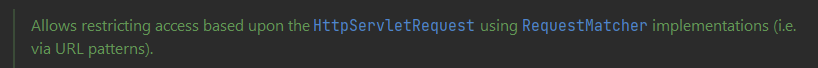 .authorizeRequests()에 대한 설명을 보니 HttpServletRequest (예. URL 패턴)에 의한 요청 제한을 가능하게 해주는 메서드라고 되어있네요.