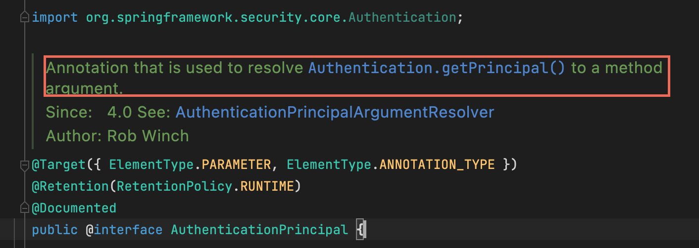 @AuthenticationPrincipal에 대한 공식적인 설명은 아래 사진에 나온 것 처럼