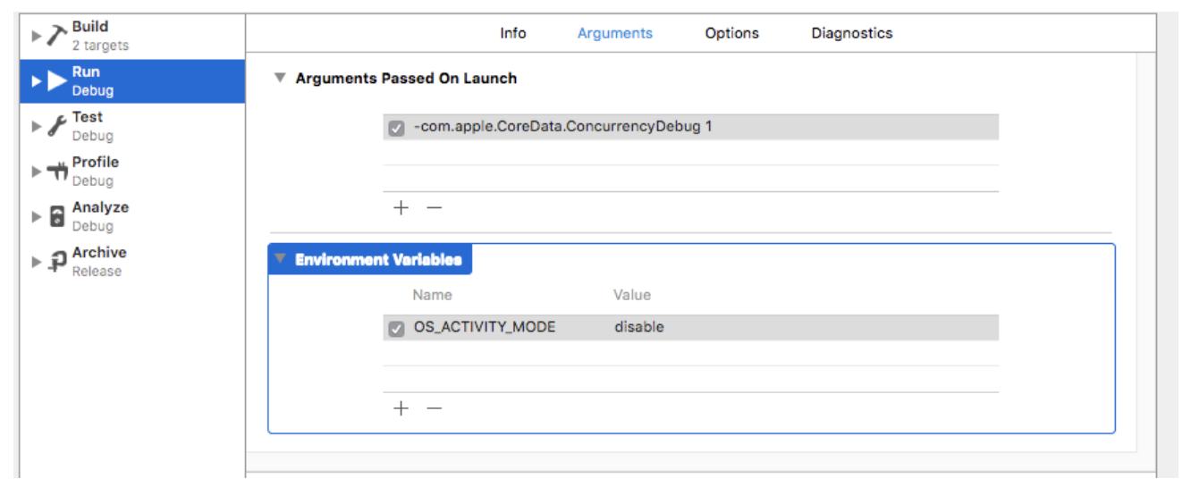 Environment Variable에서 Name 부분에 OS_ACTIVITY_MODE를 입력하고 Value에는 disable을 입력해줍니다.