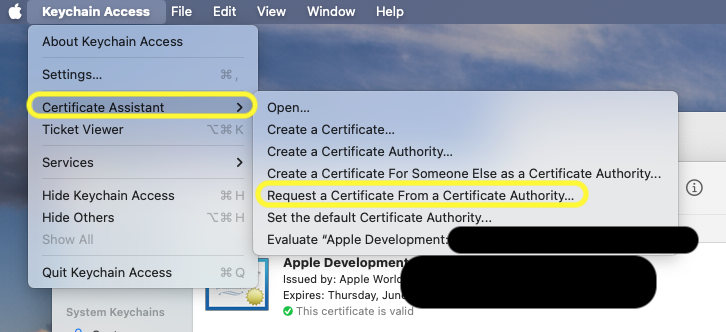 Private key를 install 해주려면 일단 Keychain access에서 `certSigningRequest`를 만들어주어야 합니다.