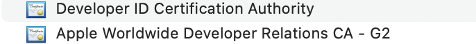 key chain에서 아래 인증서들처럼 좌측에 ">" 모양 화살표가 없는 경우는 따로 key가 등록되지 않은 경우 인 것 같습니다.