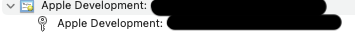 Revoke Certificate으로 만들어진 Apple Development certificate 역시 화살표 모양이 안 보였고, 결국 XCode가 새로 생성해줬을 때도 key가 등록되지 않았다는 것을 알 수 있었습니다.