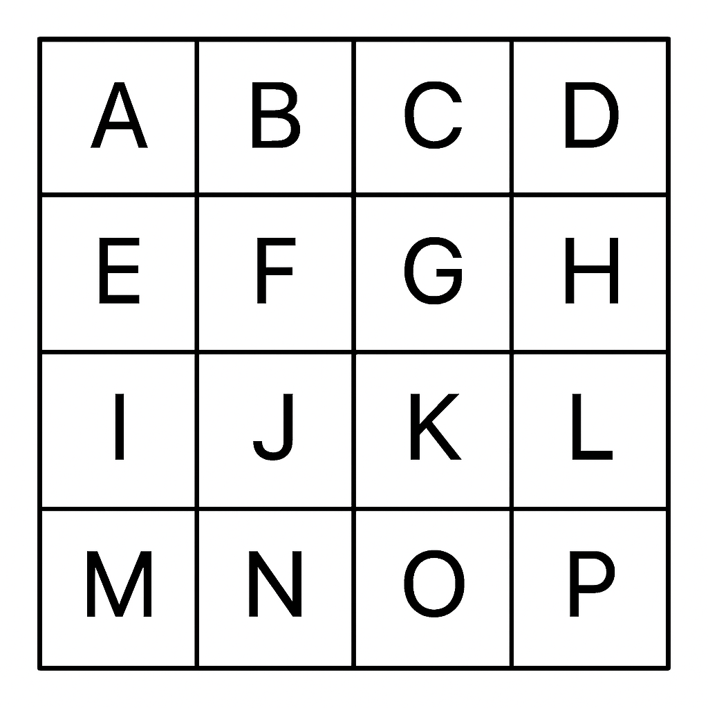 [A, B, C, D, E, F, G, H, I, J, K, L, M, N, O, P]