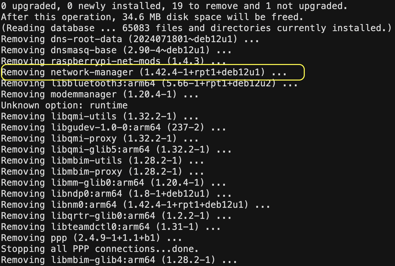 omv 설치 막바지에 설치 시 이용되었던 프로그램들을 삭제하는 과정이 있는데, 그 중 'network-manager'라는 것을 제거합니다.