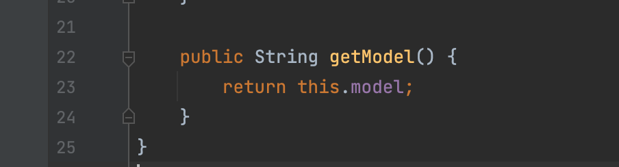 Car class로 돌아와서 getModel() method를 만들었습니다.