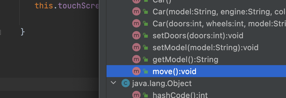 그러면 아래와 같이 override 된 move method가 나타납니다.