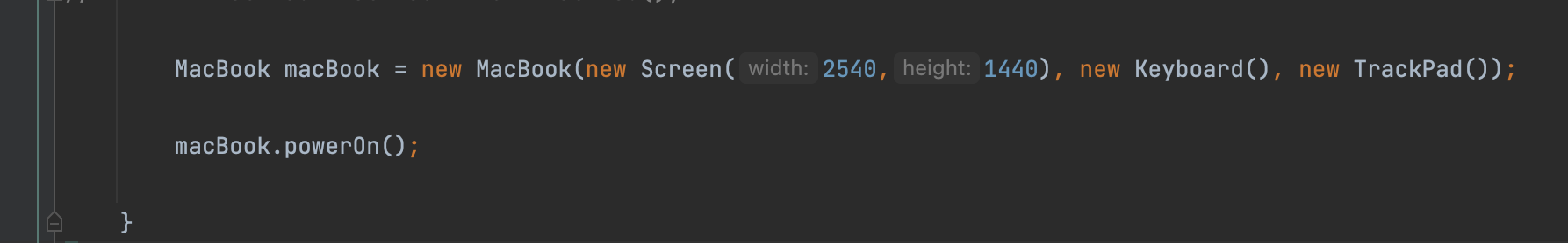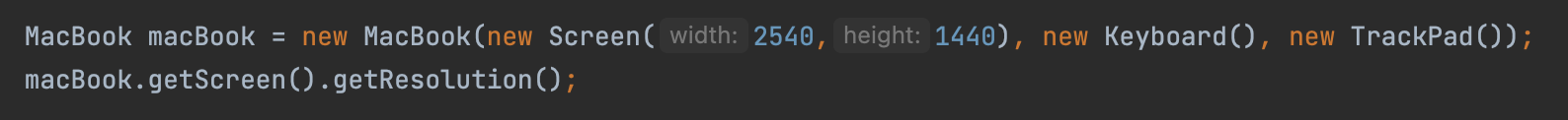 MacBook macBook = new MacBook(new Screen(2540,1440), new Keyboard(), new TrackPad());