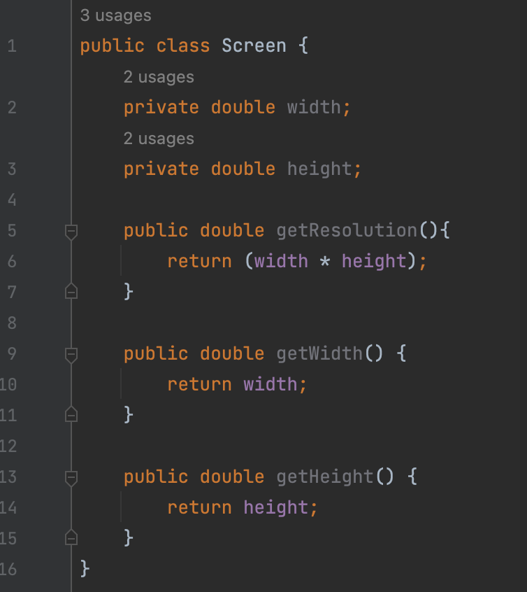 아래와 같이 MacBook에서 Screen에 접근하게 해주는 getScreen() method를 불러주고, 그런 다음에 Screen에 있는 getResolution() method를 불러주는 것입니다.